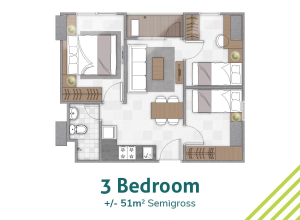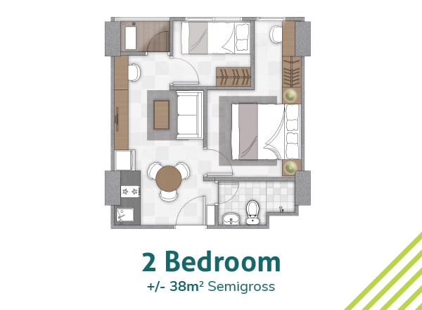 - Mendesain interior unit kamu sendiri sehigga tampak luas dan nyaman.