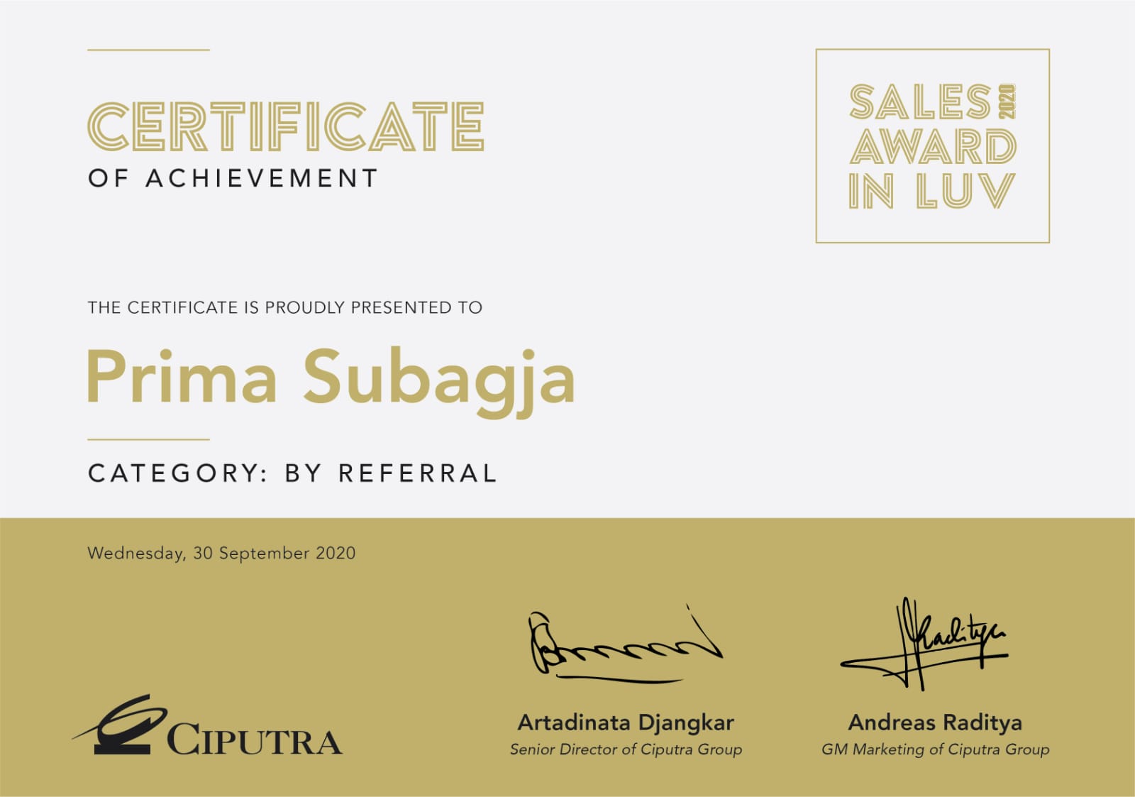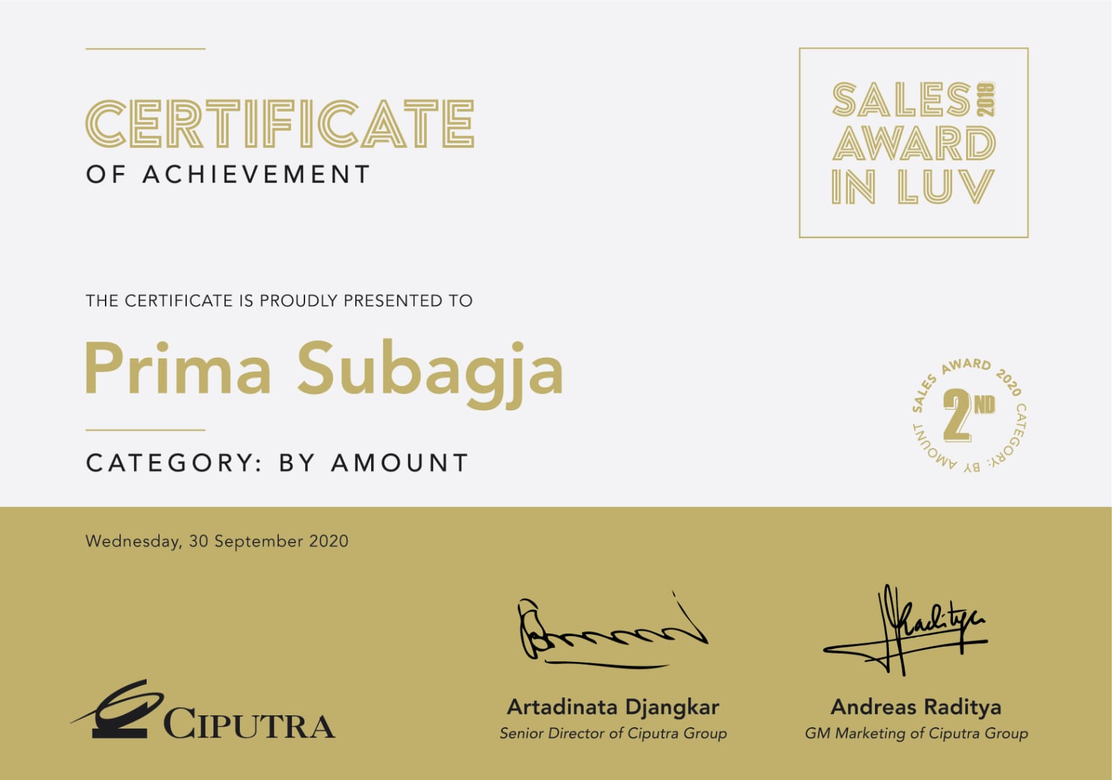 Pencapaian Terbaru, Tahun 2019 - 2020 Menjadi Salah Satu The Best Sales Ciputra Apartemen The Newton Ciputra World 2 Jakarta.